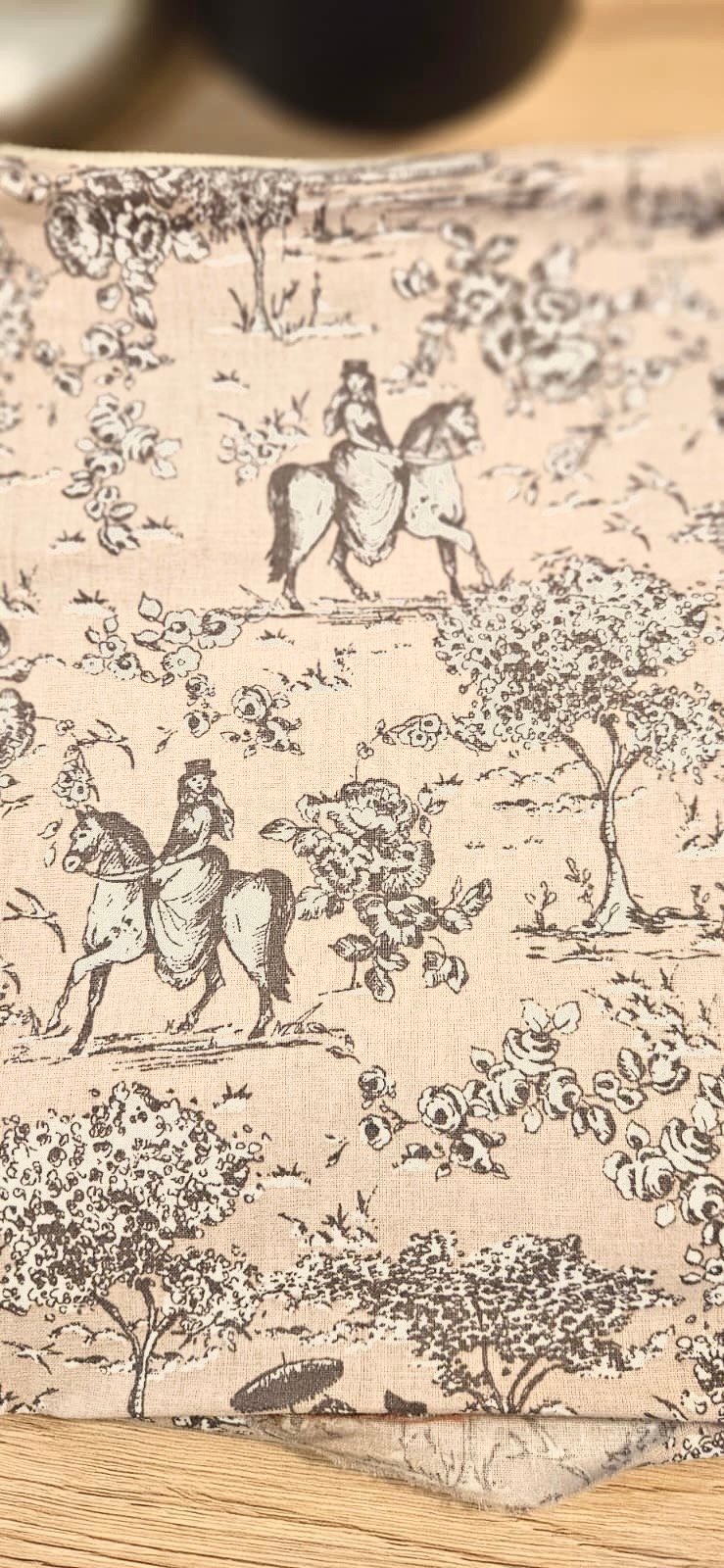 Housse pour ordinateur confectionnée à la main avec soin en velours côtelé vieux rose soigneusement sélectionné. L’intérieur est doublé d’un délicat tissu toile de Jouy aux motifs de cavalières et chevaux — une finition raffinée qui se révèle à chaque ouverture. Une poche extérieure zippée permet d’y glisser facilement passeport, cartes ou documents. Sa fermeture éclair dorée est ornée d’un petit nœud en tissu coordonné — Une poche extérieure avec sa 2ème fermeture éclair dorée permet d’y glisser facilement passeport, cartes ou documents. Un détail qui élégant et utile.